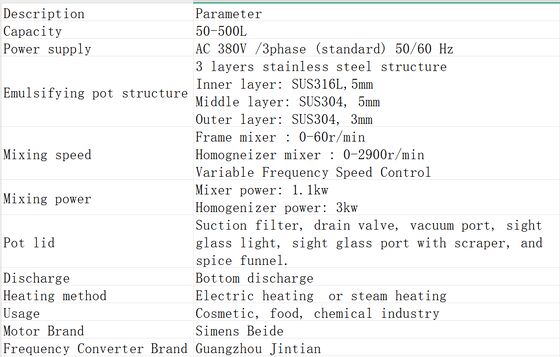 300L de sabão líquido cosmético, tanque de mistura emulsionante a vácuo com agitador